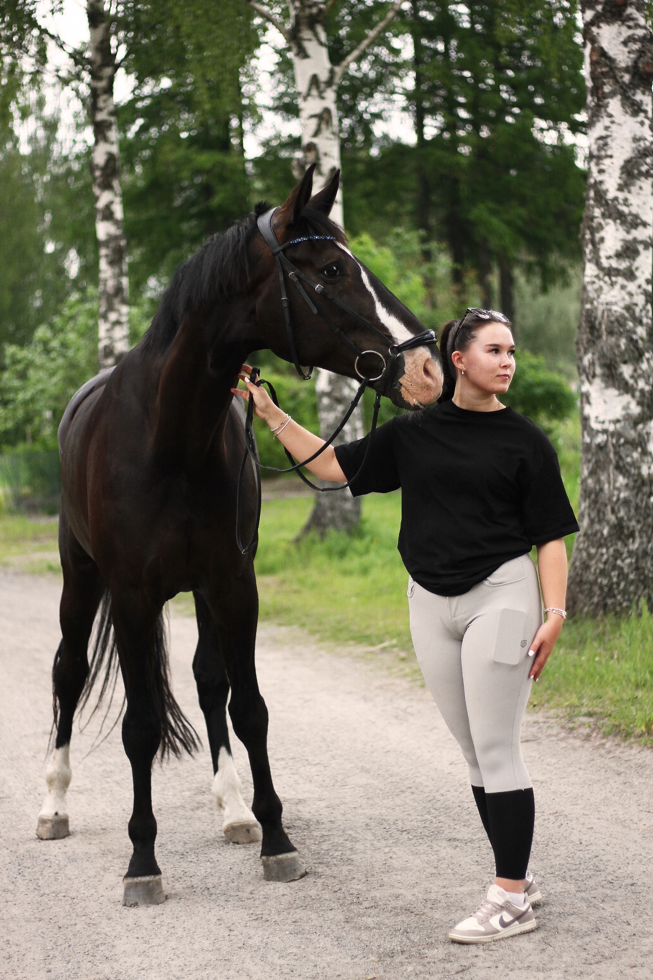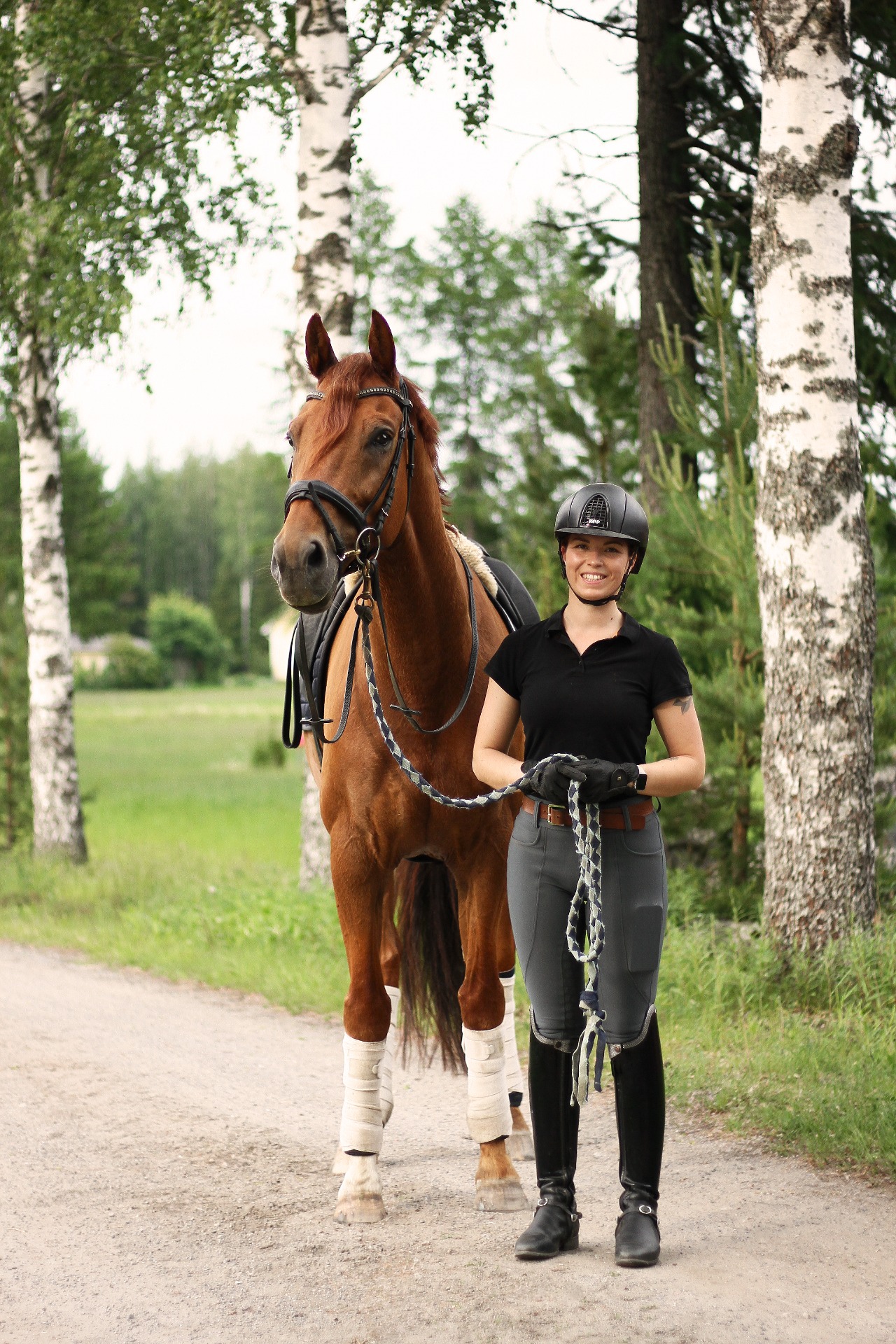 Rita osallistuu myös päivittäisiin tallitöihin, joista hänellä on laaja-alainen kokemus, sekä vastaa somesisällön tuottamisesta ja markkinoinnin suunnittelusta.