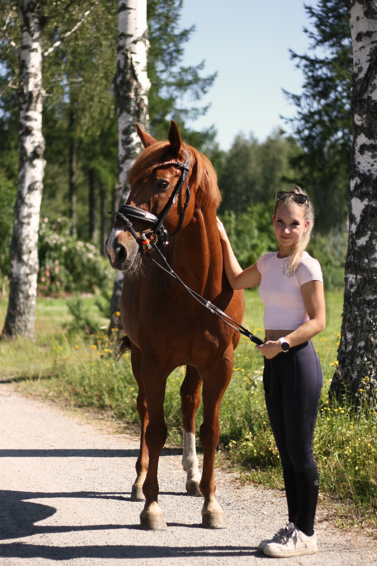 Vilma on kerryttänyt monipuolista kokemusta eri talleilta ja erilaisten hevosten parista. Hän on tärkeä osa tallin arkea ja viihtyykin Myllyojalla erinomaisesti – usein hänet näkee tallilla lähes päivittäin.